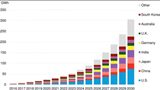 Áætlað er að árið 2030 verði umsvif í orkugeymslu á heimsvísu sexföld á við það sem þau voru árið 2016. Þetta kemur fram í nýrri greiningu Bloomberg New Energy Finance, þar sem leiddar eru líkur að því að árið 2030 verði samanlögð orkugeymslugeta komin í 305 gígawattstundir. Þetta sé þó aðeins byrjunin. Um þessar mundir sé miklu fjármagni varið í tækniþróun á þessu sviði, kostnaður fari ört lækkandi og stóraukin nýting vindorku og sólarorku ýti undir þróunina. Orkugeymsla muni fyrirsjáanlega gegna veigamiklu hlutverki í orkukerfum framtíðarinnar.